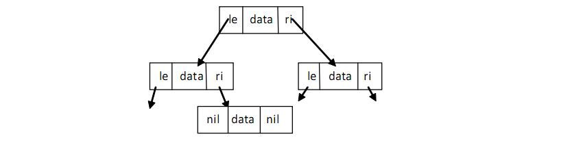 结构体类型可以通过引用自身来定义。这在定义链表或二叉树的元素(通常叫节点)时特别有用,此时节点包含指向临近节点的链接(地址)。如下所示,链表中的 su,树中的 ri 和 le 分别是指向别的节点的指针。