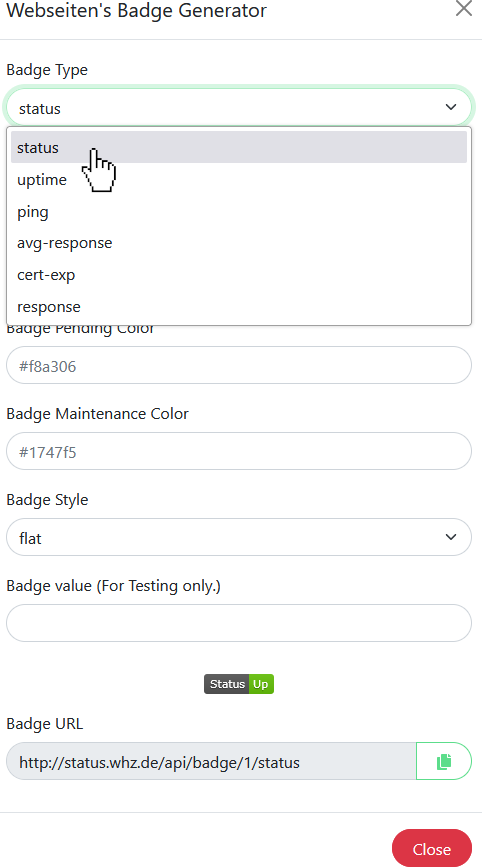 Badge Duration at ping, uptime and avg-response